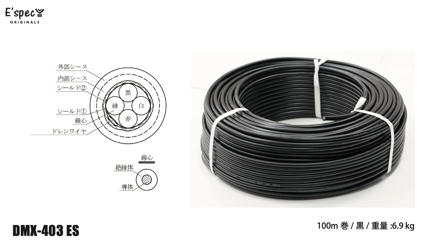 耐候性と柔軟性に優れた国産DMXケーブル「DMX403-ES」
