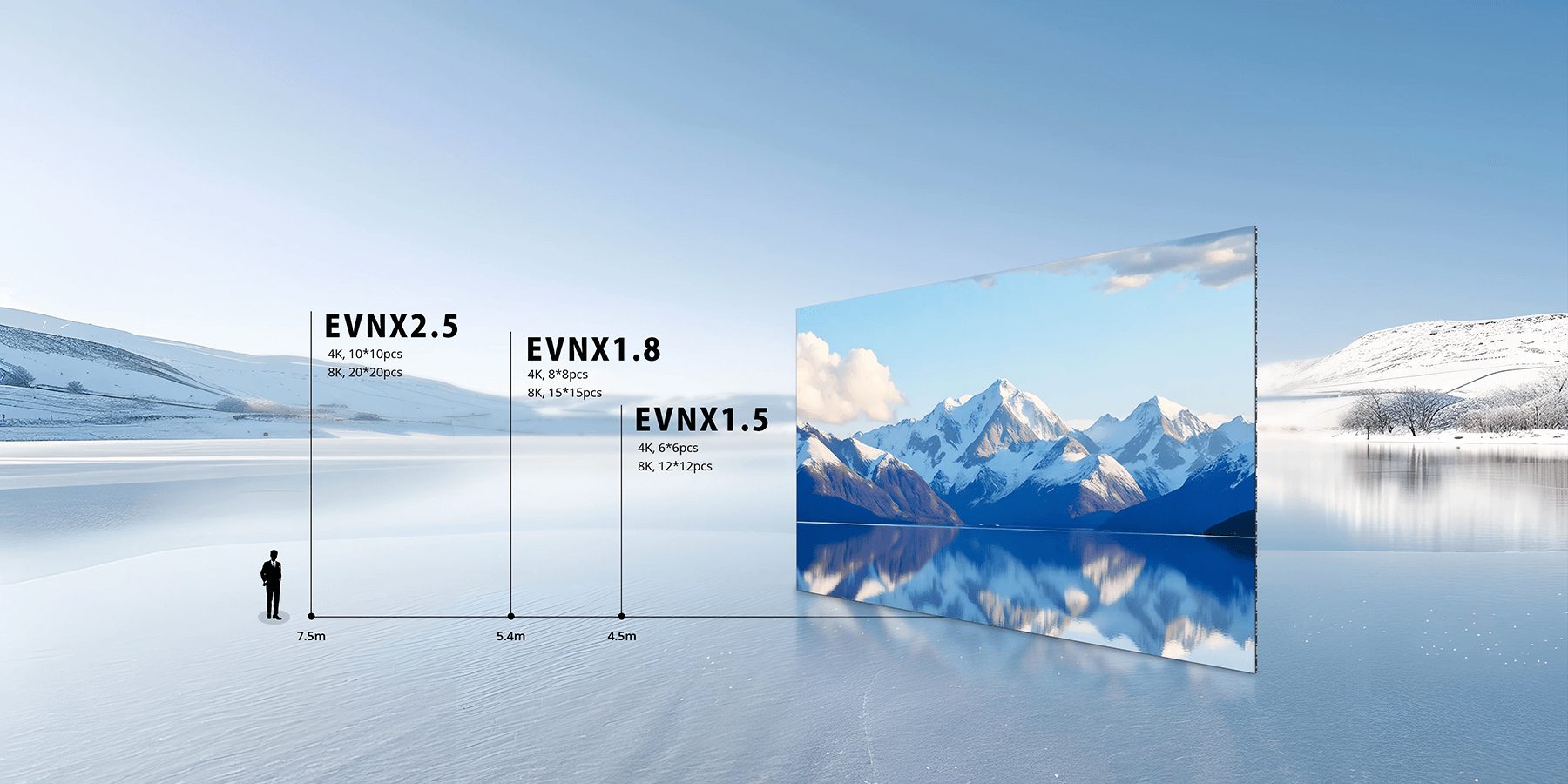 EVNXシリーズは16:9比の設計で、視覚体験を向上させ、様々なピクセルピッチを備えており、より多い高精細オプションをご提供いたします。