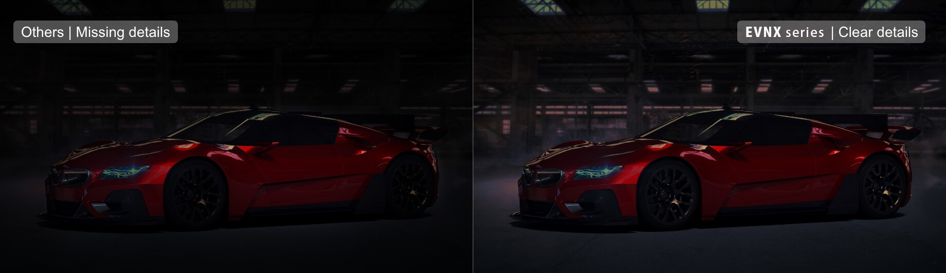 EVNXシリーズは、低輝度での高階調を提供できます。低輝度でも細部まで明確に再現できます