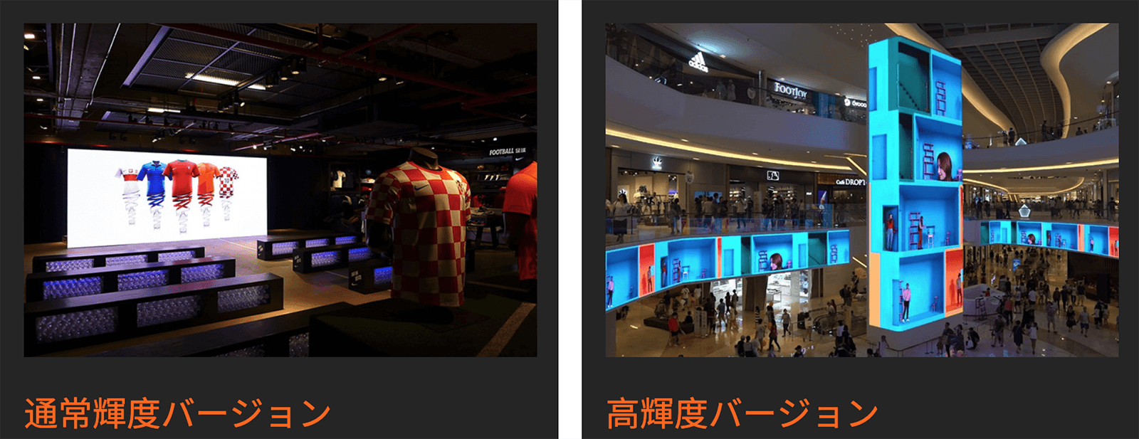 納入設備に応じた輝度の選択オプションにより、お客様は実際に応じて適切な輝度バージョンを選択できます。