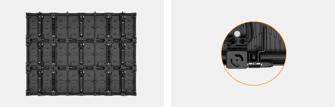 迅速なメンテナンスが可能なモジュラーデザイン EVSAシリーズは、モジュールと電源ボックスの前面および後面のメンテナンスをできており、電源ボックスはボタンを押すだけで簡単に取り外すことができます。モジュールは250(W)*250(H)mmサイズであり、磁気止め設計を採用しており、現場で迅速に交換できます。