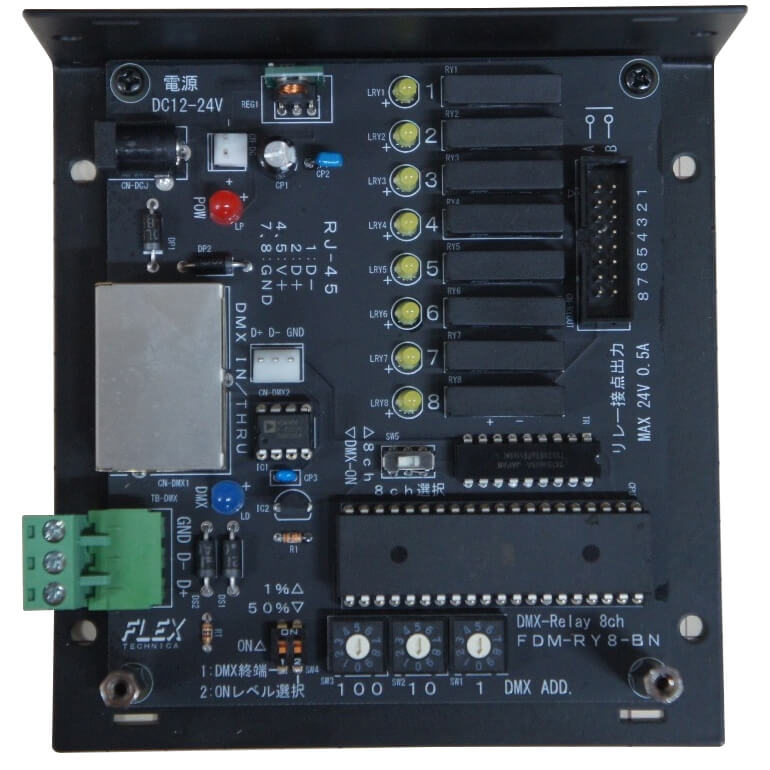 FLEX TECHNICA「FDM-8RY」は、DMXで8個のリレーを駆動するインターフェースです。