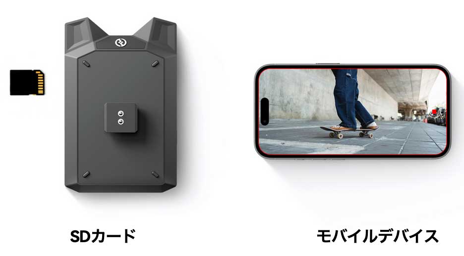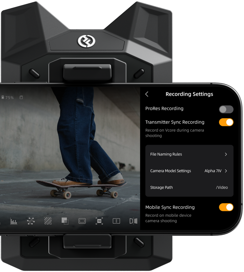 Vcoreはタイムコードが埋め込まれたMP4形式のプロキシファイルを内蔵SDカード [5]に保存し、バックアップを確実に実行します。また、便利なHollyViewアプリを使って、連携したモバイルデバイスでMP4形式の同期録画が自動的に始まるよう設定できます。モバイルファイルはSNSにすぐに投稿したり手軽に編集したりでき、スピードが求められる撮影で重宝します。